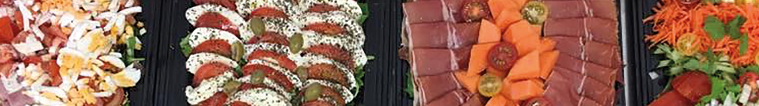 | Italiaanse kaassalade Groentenkrans, ham, kaas, stokbroddje met boter, potje vinaigrette |
